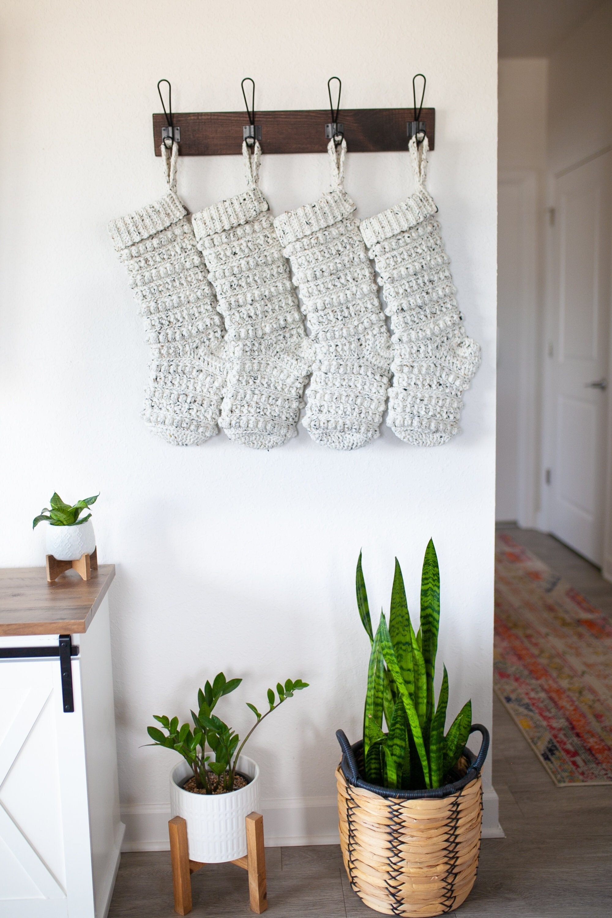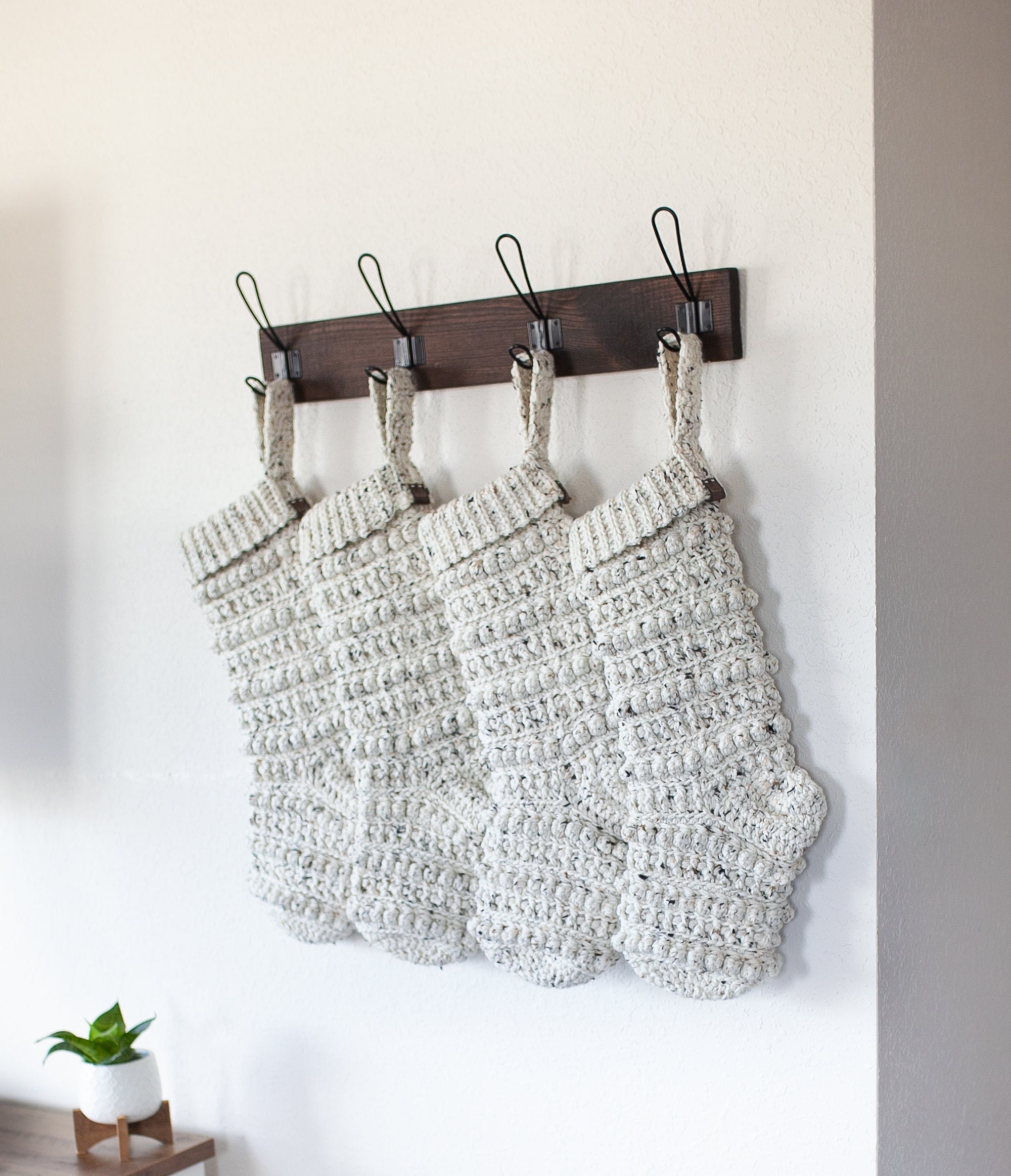 WOW this is a beautiful stocking! It looks really nice in the photos, but it’s even better in person… and bigger! Very high quality craftsmanship, and I love the speckles in the yarn that I didn’t fully notice in the photos. This is my daughter’s first stocking and it’s perfect ❤️